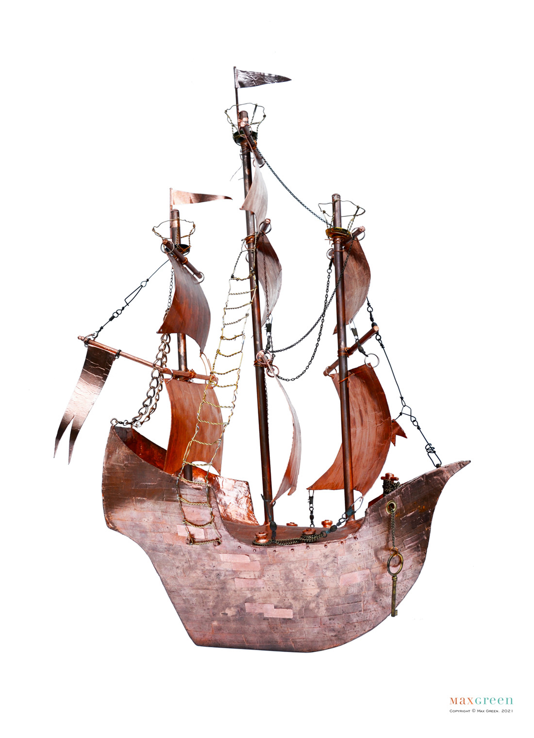 Sculpture Mixed Media: Repurposed materials, Copper. Size: 59h x 44w x 20d cm
